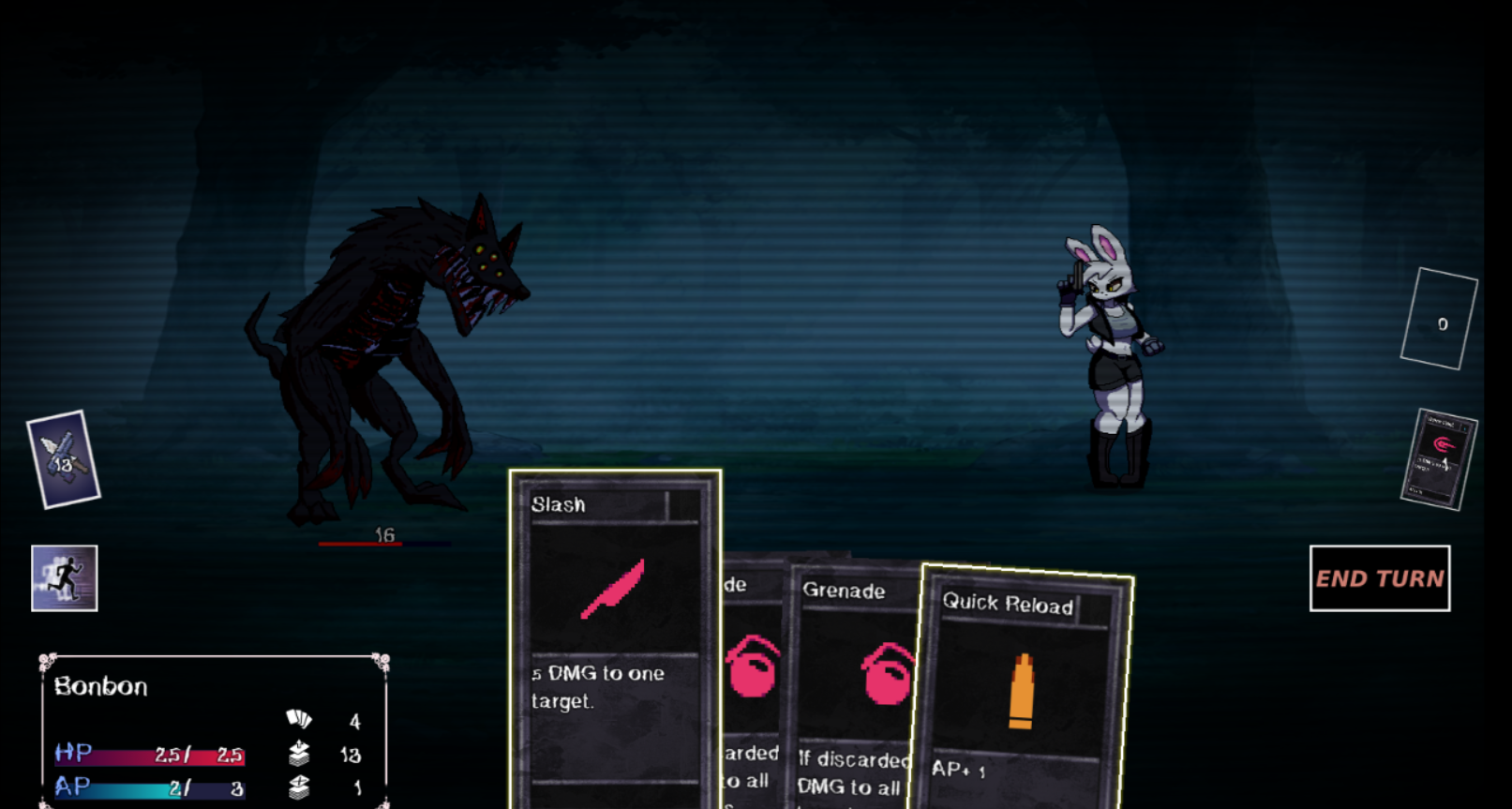 This Ain’t in My Contract! is a dark, atmospheric turn-based dungeon crawler card battle RPG. You play as a bnuy policewoman who receives a mysterious late night call that pulls her into a cursed village overrun with grotesque monsters.
